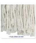 Clean up quicker with a high-quality, ultra-absorbent mop head. Cut-end design minimizes snags. Heavy-duty headband ensures secure attachment to handle. For use with clamp-style mop handles and wringer bucket (sold separately). Soft enough to clean delicate floors, yet durable enough to handle harsh chemicals and stains. Great for use in industrial settings, including restrooms, hallways, offices, lobby areas, kitchens, and dining areas.
