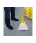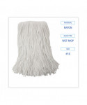 Clean up quicker with a high-quality, ultra-absorbent mop head. Cut-end design minimizes snags. Heavy-duty headband ensures secure attachment to handle. For use with clamp-style mop handles and wringer bucket (sold separately). Soft enough to clean delicate floors, yet durable enough to handle harsh chemicals and stains. Great for use in industrial settings, including restrooms, hallways, offices, lobby areas, kitchens, and dining areas.