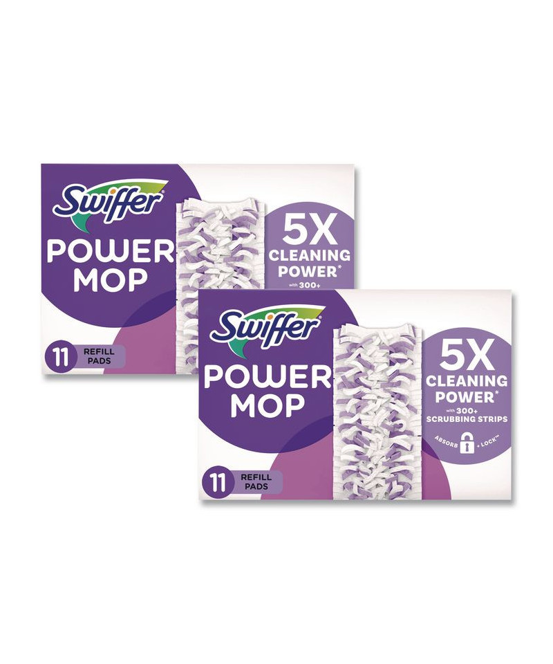 Mop smarter with the Swiffer PowerMop, an all-in-one mopping system that gives you a mop and bucket clean in half the time. The multi-surface mopping pads have 300+ scrubbing strips that reach deep into grooves and grout to remove sticky spills and daily dirt and grime.