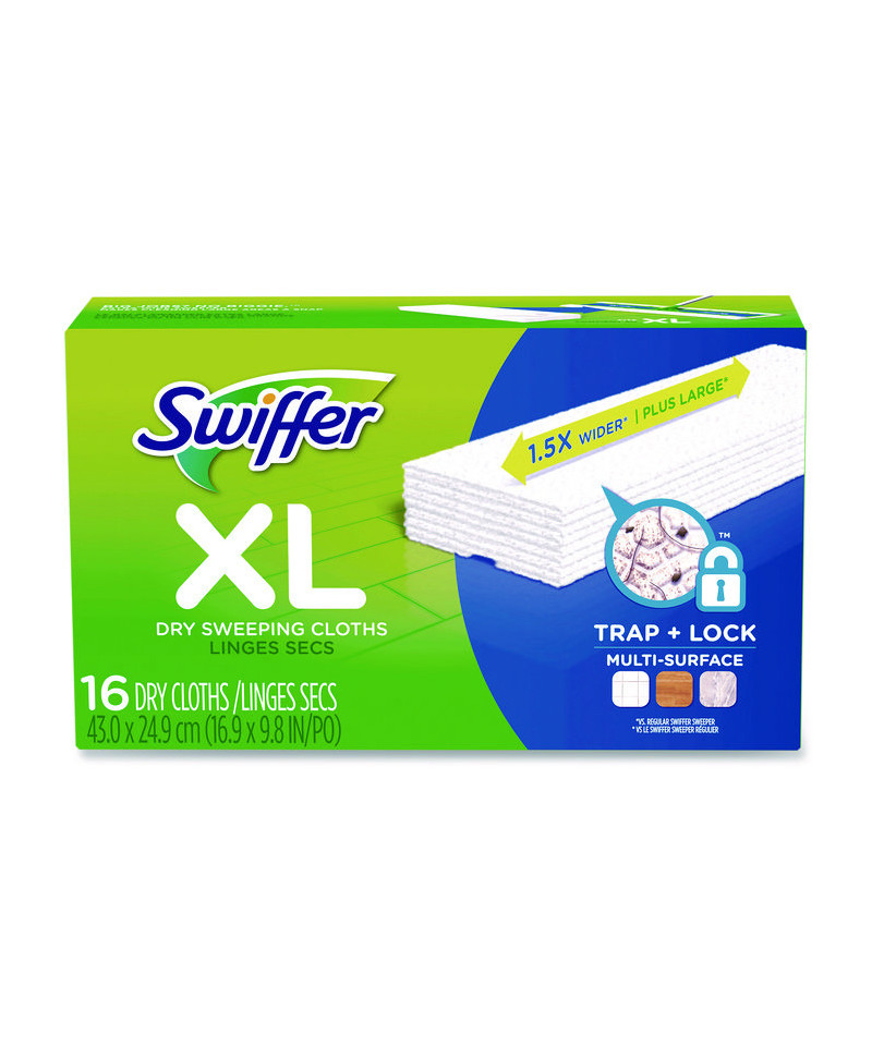 Swiffer® XL Dry Cloths are 1.5X wider than regular Swiffer® Sweeper cloths to pick up even more dirt, dust and hair with each swipe. Using thick dirt-grabbing ridges and grooves, our powerful dry sweeping cloths leave your floors cleaner than a broom, even on textured surfaces.