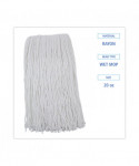 Clean up quicker with a high-quality, ultra-absorbent mop head. Cut-end design minimizes snags. Heavy-duty headband ensures secure attachment to handle. For use with clamp-style mop handles and wringer bucket (sold separately). Soft enough to clean delicate floors, yet durable enough to handle harsh chemicals and stains. Great for use in industrial settings, including restrooms, hallways, offices, lobby areas, kitchens, and dining areas.