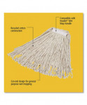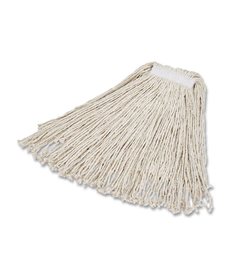 Wash high-traffic areas efficiently with this general-purpose mop head. The cotton has dependable liquid absorption properties, and the 1" cloth headband ensures a secure grip to the handle. Cut-end tailband prevents tangling, increases floor coverage and is hand washable.