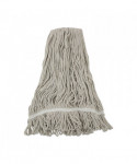 This sturdy mop head is made with premium four-ply yarn and a heavy-duty, polyester tape headband. Constructed with a looped-end design that minimizes less lint, fraying, and unraveling. Built to be durable, the double-sewn tailband prevents tangles and provides more floor coverage. Made from high-quality fiber. Great for general cleaning or floor finishing. For use with clamp style mop handles, which are sold separately.