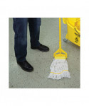 These mop heads are created from premium-quality, four-ply cotton/synthetic yarn for maximum absorbency. The industrial strength mop head is designed for high-volume use. Each head absorbs up to seven times its own weight in liquid. Constructed to be more durable with heavy-duty, vinyl headbands. Machine washable. Launder in mesh bag. Use with clamp or spring grip-style handles, (sold separately).