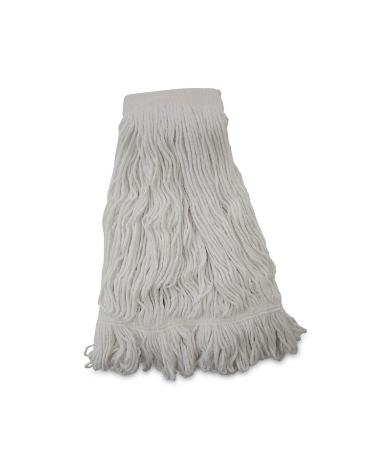 Boardwalk Saddleback Loop-End Wet Mop Heads are constructed from standard, four-ply, natural yarn for a quality mop head. The looped end design sheds less lint, reduces fraying and unraveling. The durable, double-sewn tailband prevents tangles and provides more floor coverage on a variety of floor types. The heavy-duty, five-inch, vinyl mesh headband securely holds full-weight, premium fiber strands. Designed for use with clamp-style or gripper-style mop handle, which is sold separately.