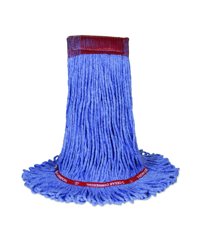 The quality four-ply cotton/synthetic blend yarn of our MaxiClean® Loop-End Mops combines high on-floor performance with long product life. Cotton fibers provide high water absorption and retention for effective floor drying. Synthetic fibers such as rayon afford maximum water pickup and require no "break-in." Other synthetic fibers such as polyester give increased strength and long product life.