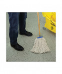 Mop Head is constructed with premium, four-ply yarn for added absorbency. Built with a standard 1/4" threaded bolt head for easy screw-in mop head change. The mop heads are held together and wrapped with a galvanized metal outerband for the utmost in durability. The mop lies flat on floor and is designed for use with a lie-flat screw-in mop handle, sold separately.