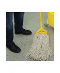 Mop Head is constructed with premium, four-ply yarn for added absorbency. Built with a standard 1/4" threaded bolt head for easy screw-in mop head change. The mop heads are held together and wrapped with a galvanized metal outerband for the utmost in durability. The mop lies flat on floor and is designed for use with a lie-flat screw-in mop handle, sold separately.
