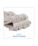 Mop Head, Economical Lie-Flat Head, Cotton Fiber, 32 oz, White, 12/Carton
