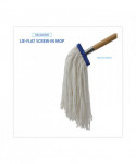 Mop Head is constructed with premium, four-ply yarn for added absorbency. Built with a standard 1/4" threaded bolt head for easy screw-in mop head change. The mop heads are held together and wrapped with a galvanized metal outerband for the utmost in durability. The mop lies flat on floor and is designed for use with a lie-flat screw-in mop handle, sold separately.