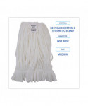 Mop Head, Looped, Enviro Clean With Tailband, Cotton/Synthetic, Medium, White, 12/Carton