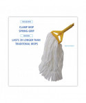 Patented, mildew-resistant DuPont® material is designed to meet clean room (Class 1000) applications for lint reduction. Ideal for cleanup of food service areas, hospitals, and areas with hazardous chemical spills. Made from 100% recycled, cotton/synthetic blend fibers that are interlocked for strength, launderability, and less linting. Fibertac-processed mops last three times longer than comparable mops. Durable, double-sewn tailband. Handle sold separately.