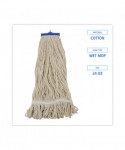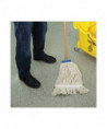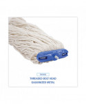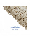 Boardwalk® Lie-Flat Mop Head is constructed from four-ply, premium yarn in looped-end design which sheds less lint, reduces fraying and unraveling. The durable, double-sewn tailband prevents tangles and provides more floor coverage with each stroke. The mop head is designed to lay flat on the floor, providing broad coverage. Built with a plastic, molded cap that contains a metal 1/4-in. threaded bolt head. Lie-flat screw in mop handle sold separately.
