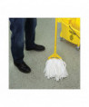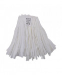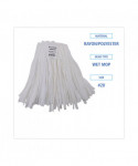 Reliable, white rayon and polyester blend fiber mop that produces less lint than traditional cotton mops. The synthetic heads provide greater absorption than cotton and are easier to wring out, with less unwanted material in waste stream. Each mop is individually packaged to preserve cleanliness and requires no break in. Handle sold separately.