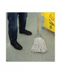 Ultra-absorbent white, natural cotton fiber is ideal for general mopping and all-purpose cleaning in any environment. Heavy-duty, 1.25" cotton headband adds to quality and durability. Soft enough to use on delicate floors, but strong enough to handle tough stains and cleaning products. For use with clamp style mop handle. Handle sold separately so you can customize your mop head size and replace when needed.
