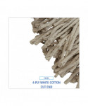 These mop heads are made with absorbent, natural cotton fiber and are designed for general mopping on a variety of floor surfaces. Constructed from four-ply, cut-end yarn, the mop heads are designed to lay flat on the floor, providing broad coverage. Built with a plastic, molded cap that contains a metal 1/4-in. threaded bolt head. Lie-flat screw in mop handle sold separately.