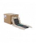 Boardwalk® Flash Forty Disposable Dustmop is a 40 ft continuous roll of disposable dust mop heads. Simply open the dispenser, extend the roll, and cut the length that fits the size of your dust mop frame. The backing has spaced slot pockets so that one inventory fits multiple frame sizes. An economical dust mop for situations where you need to dispose after one cleaning. Each carton contains a razor knife for cutting.