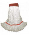 Boardwalk Saddleback Loop-End Wet Mop Heads are constructed from standard, four-ply, natural yarn for a quality mop head. The looped end design sheds less lint, reduces fraying and unraveling. The durable, double-sewn tailband prevents tangles and provides more floor coverage on a variety of floor types. The heavy-duty, five-inch, vinyl mesh headband securely holds full-weight, premium fiber strands. Designed for use with clamp-style or gripper-style mop handle, which is sold separately.