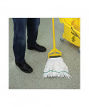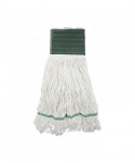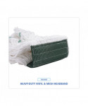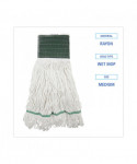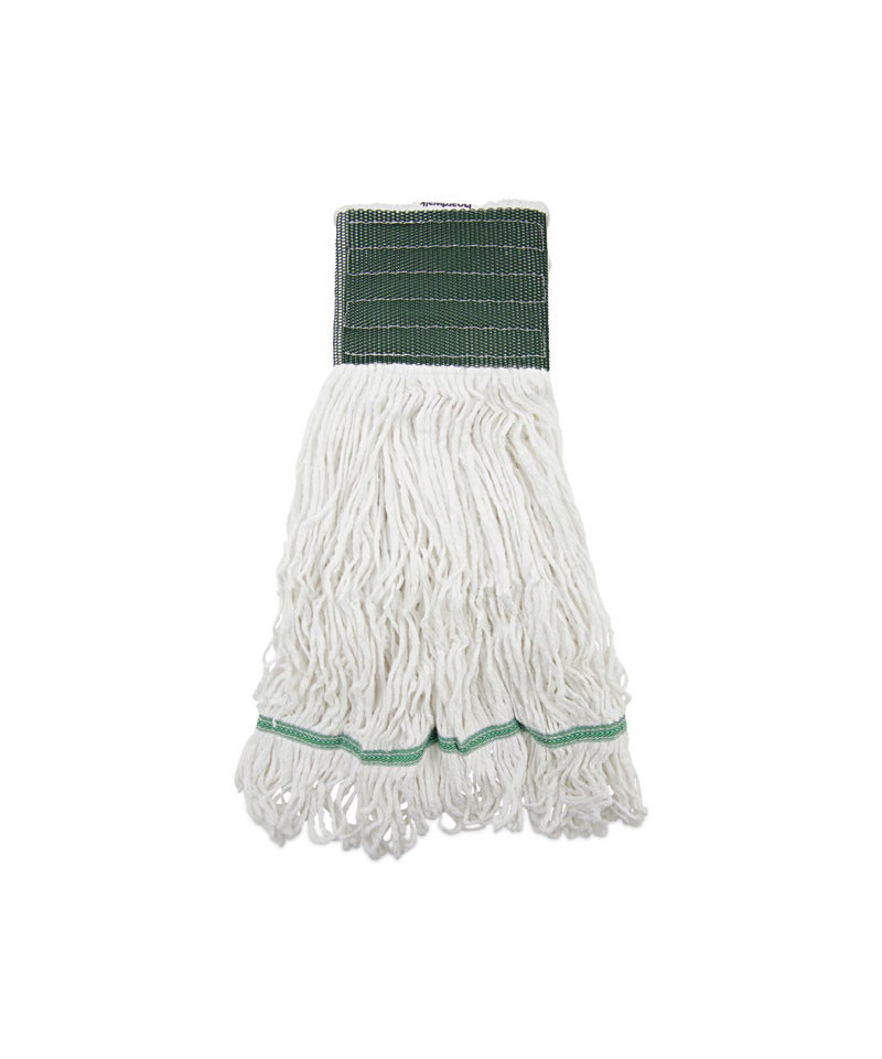 Boardwalk Saddleback Loop-End Wet Mop Heads are constructed from standard, four-ply, natural yarn for a quality mop head. The looped end design sheds less lint, reduces fraying and unraveling. The durable, double-sewn tailband prevents tangles and provides more floor coverage on a variety of floor types. The heavy-duty, five-inch, vinyl mesh headband securely holds full-weight, premium fiber strands. Designed for use with clamp-style or gripper-style mop handle, which is sold separately.