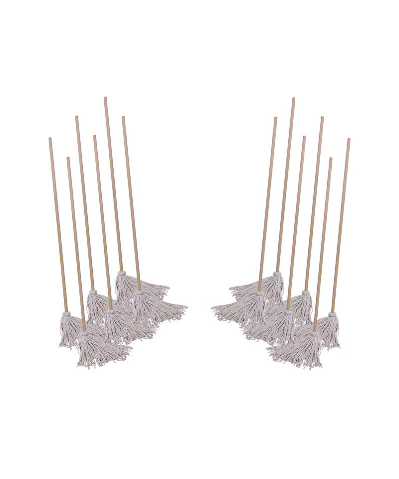 These deck mops are the perfect tool for keeping your deck clean, dry, and maintained. Each mop head is attached to a permanent, solid, natural wood handle for a steady grip. The fuller mop heads are constructed from white, economy, four-ply yarn, for added absorbency. Built with a lightweight design that's easy to carry and maneuver, making it great for daily use, indoors or outdoors.