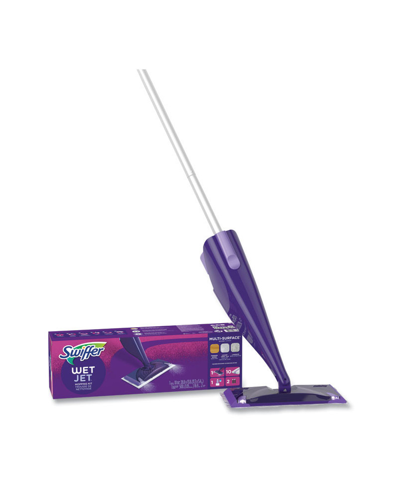 Swiffer® WetJet® gives you a great clean on virtually any floor. With a unique dual-nozzle sprayer, this all-in-one mopping system breaks up and dissolves tough messes for a powerful clean. Its cleaning solution loosens dirt and lifts it off the floor, pulling dirt and grime into the WetJet® pad and locking it away for good.