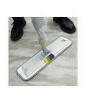 The powerful combination of our microfiber pads, and the direct dispensing design of the bucketless mop system saves time, cleaning solutions, and water use. The easy to use system reduces labor costs by reducing the amount of cleaning time. The direct application of uncontaminated chemical use virtually eliminates cross contamination and wastewater. Microfiber pad with high fabric weight works to provide a thorough clean.