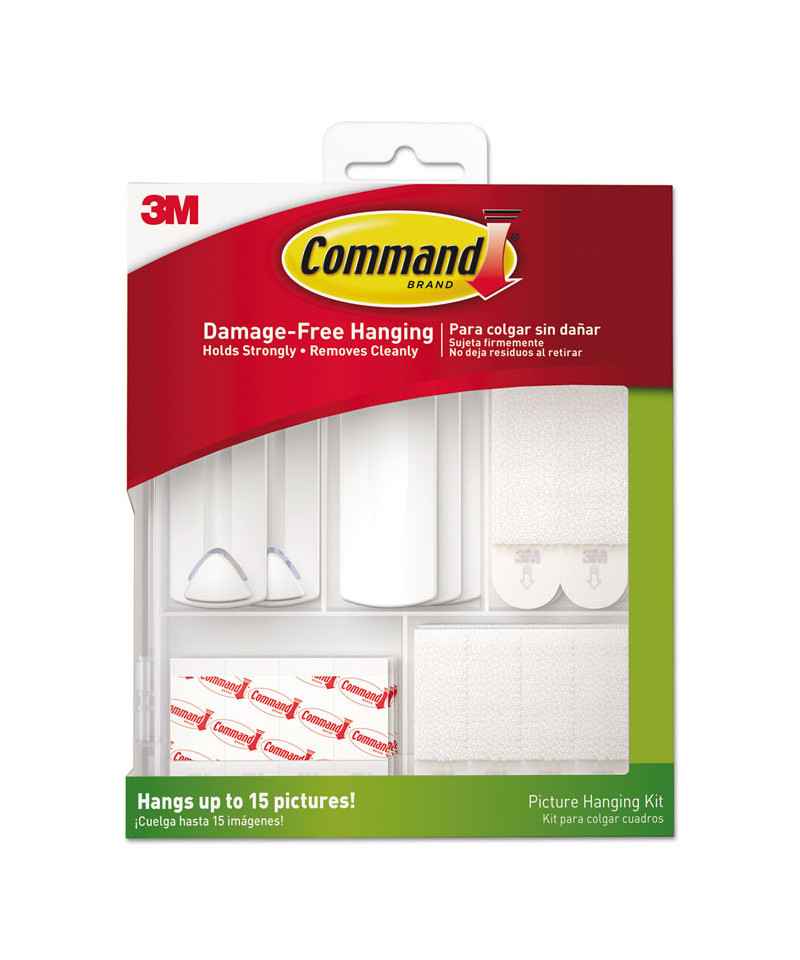 The convenient picture hanging kit contains an assortment of Command™ Picture Hanging Products in a re-closable kit for easy storage and organization. Handy strips ensure damage-free hanging. They hold on strongly, keeping your artwork right where you want it. Best of all, when you are ready to take down or move your pictures, they come off cleanly—no nail holes or sticky residue.