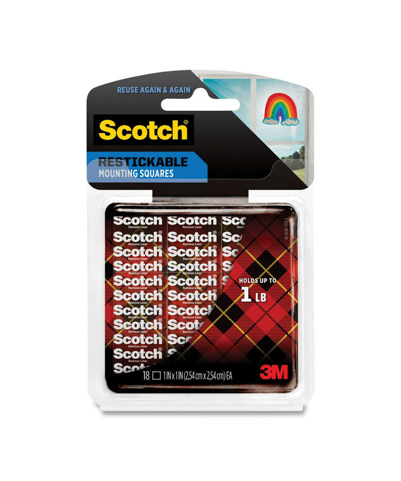 Reinvent your décor again and again with Scotch® Restickable Mounting Squares. These innovative double-sided squares allow you to mount­­and relocate­­your latest photos and artwork with a convenient, reusable design. With repetitive use, these clear adhesive squares can be reactivated simply by washing and air drying. So, whether you're showcasing your kid's latest creation, or storyboarding the next big thing, celebrate the joy of changing your mind with Scotch® Restickable Mounting Squares.