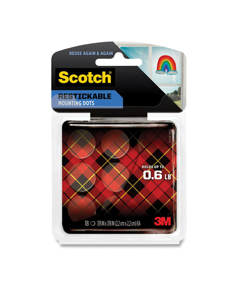 Reinvent your décor again and again with Scotch® Restickable Mounting Squares. These innovative double-sided squares allow you to mount­­and relocate­­your latest photos and artwork with a convenient, reusable design. With repetitive use, these clear adhesive squares can be reactivated simply by washing and air drying. So, whether you're showcasing your kid's latest creation, or storyboarding the next big thing, celebrate the joy of changing your mind with Scotch® Restickable Mounting Squares.