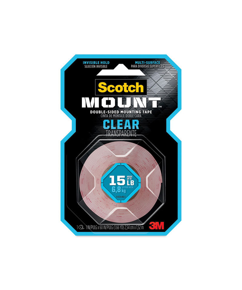 For items that need an undetectable mounting means, reach for the stealth adhering power of Scotch™ Clear Mounting Tape. Virtually clear, this double-sided permanent tape is perfect for mounting glass, tiles and artwork. Its strong bond holds up to 15 pounds, without the hassle of nails or a hammer. So whether you're mounting acrylic cosmetic organizers or a translucent picture frame, affix it confidently with Scotch™ Clear Mounting Tape.