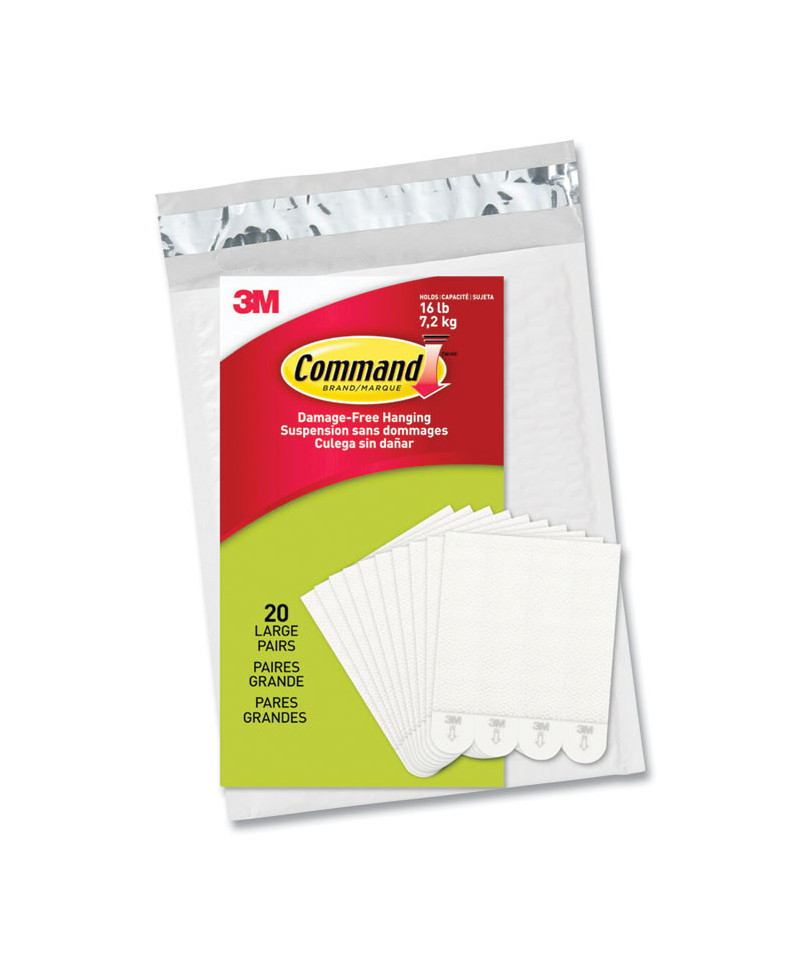 Damage-Free Hanging Picture Hanging Strip Pairs, Holds Up to 3.75 lb, Large: 0.75" x 3.65", White, 20/Pack
