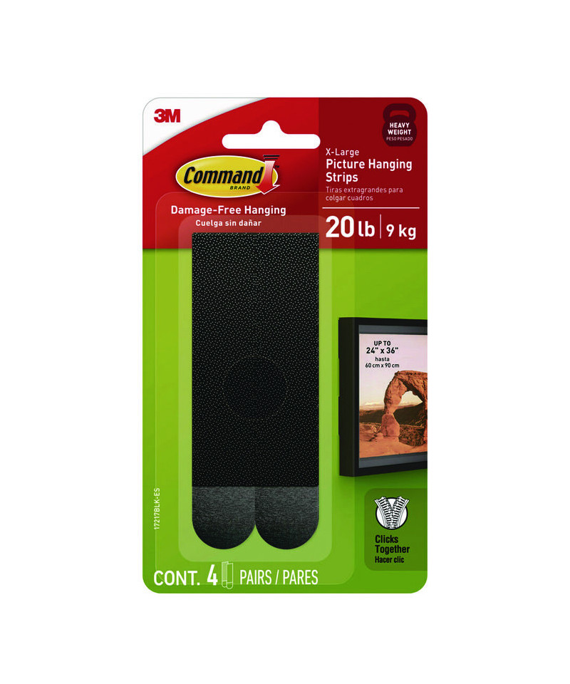 Command™ Damage-Free Hanging—holds strongly, removes cleanly. Decorate how you want, when you want, without damaging your walls. Command™ Picture Hanging Strip Pairs let you fearlessly hang pictures without nails or tools. And they're not just for picture frames, either. They're also ideal for hanging college dorm-room decor, nursery decor, wooden letters, mirrors, wall clocks and more. Handy pairs click together and lock in place to keep everything level; and when you're ready to redecorate, they always remove cleanly, leaving no holes, marks, sticky residue or damage behind.