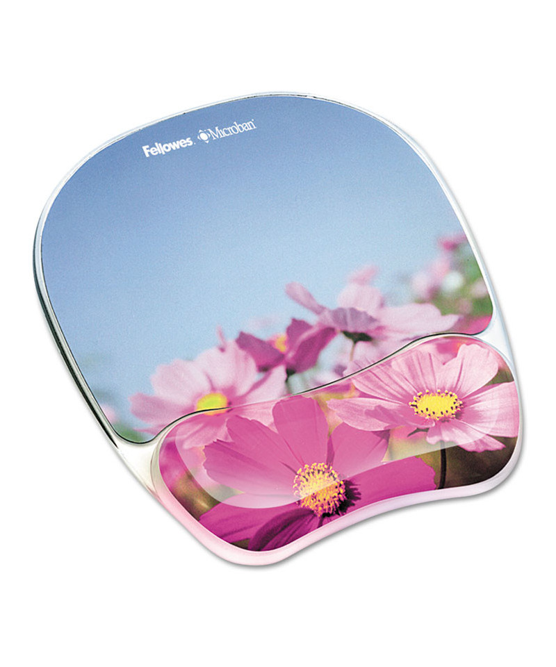 Photo Gel Mouse Pad with Wrist Rest with Microban Protection, 9.25 x 7.87, Pink Flowers Design
