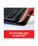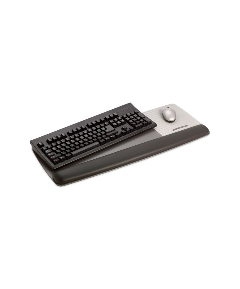 3M Gel Wrist Rest for Keyboard and Mouse has a tilt adjustable platform for comfort and keeps keyboard and mouse in place. The easy to clean leatherette cover has antimicrobial product protection which inhibits the growth of microorganisms, such as bacteria, on the product surface, that can cause stains, odors and product degradation. Includes a Precise Mouse Pad with battery saving design that mounts on the right or left side of the platform.