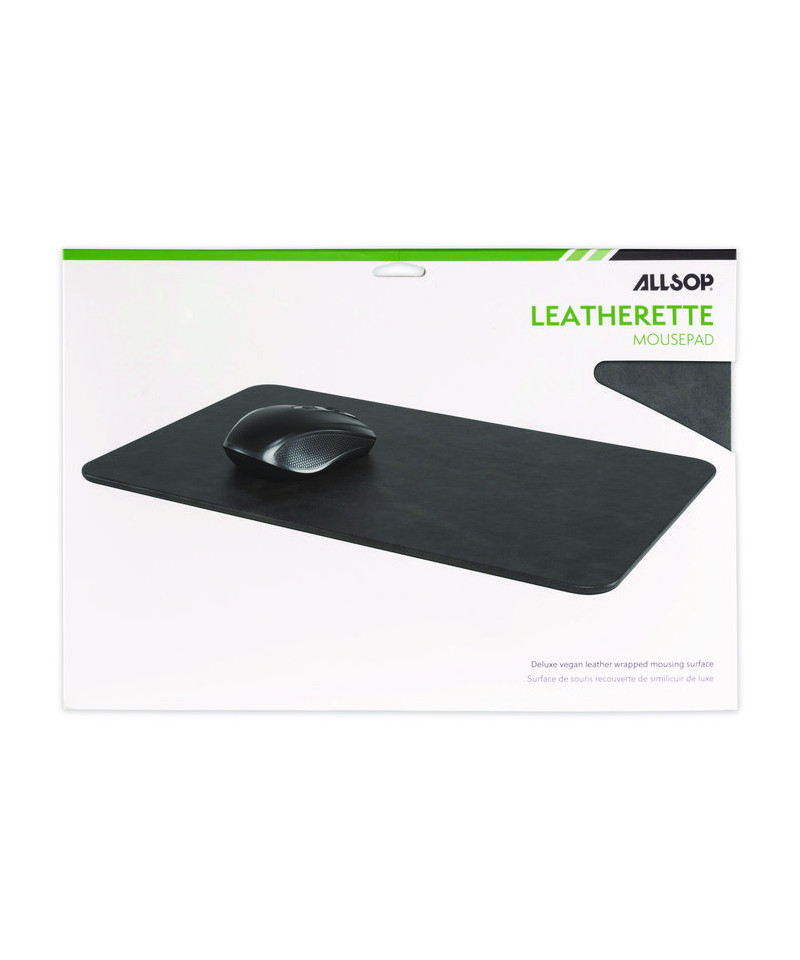 The Allsop Leatherette Mousepad features a large mousing surface for easy movement and a non-skid base to keep the mousepad in place. Enjoy the smooth and soft luxury feel of deluxe vegan leather coupled with classic styling that compliments any home or office. The Leatherette Mousepad surface is easy to clean and the wrapped edge provides a clean aesthetic while resisting wear or fraying.