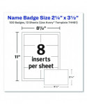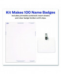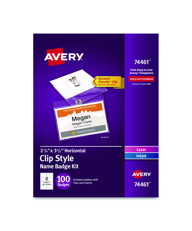 These badges feature a durable, easy-to-load, open top, pocket-style design. White micro-perforated name badge inserts are printable on both sides and separate cleanly leaving smooth edges. Create badges with text and colorful graphics using free designs and templates with Avery® Design & Print. Plastic holder is reusable and displays names clearly. 8.5 x 11 sheets for laser and inkjet printers.