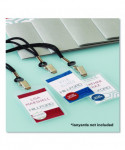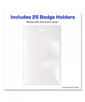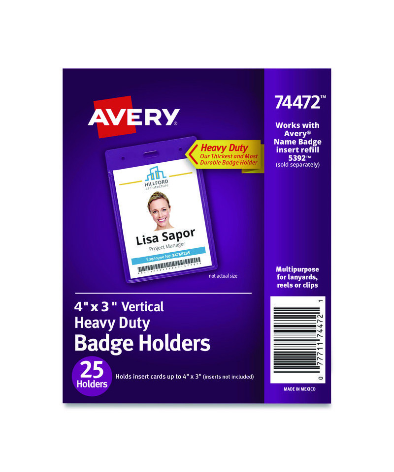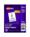 Secure design keeps badges from falling out. Heavyweight flexible plastic is ideal for permanent or temporary identification. Protect security access control cards or create name badges. Multi-use styles are pre-punched to accommodate lanyards and reel clips. Use with Avery® Name Badge Inserts (5390 and 5392). Easy to Customize with free templates and designs using Avery Design & Print online.