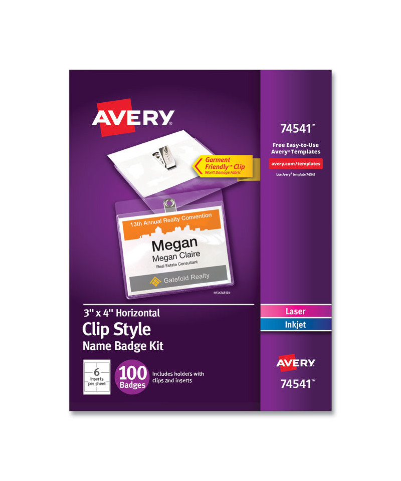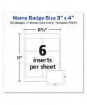These badges feature a durable, easy-to-load, open top, pocket-style design. White micro-perforated name badge inserts are printable on both sides and separate cleanly leaving smooth edges. Create badges with text and colorful graphics using free designs and templates with Avery® Design & Print. Plastic holder is reusable and displays names clearly. 8.5 x 11 sheets for laser and inkjet printers.