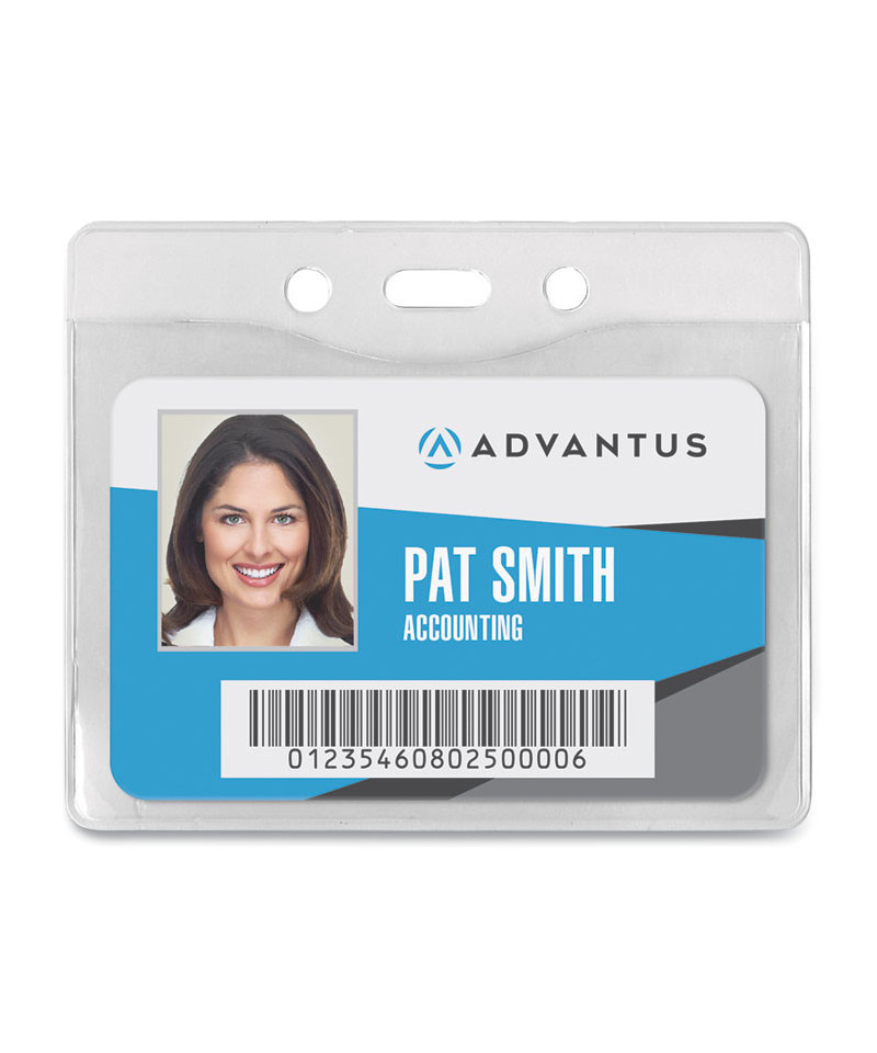Security ID Badge Holders, Horizontal, Pre-Punched for Chain/Clip, Clear, 3.75" x 3.25" Holder, 3.5" x 2.5" Insert, 50/Box