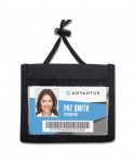 This small compact design keeps your ID card/ badge close and secure. These badge ID holders feature a nylon convention pouch to do double-duty: they display your identification card as well as offer additional storage. Back features two pockets: one open and one zippered to store credit cards or other valuable items. Adjustable 44" cord.