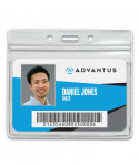 Durable vinyl construction and a seal-top closure keeps your security badge fully enclosed on all sides to protect it from water, oil, grease, soil, dust and more. Fully transparent face keeps your ID visible. Die-cut slot and two pre-punched circular holes accommodate lanyards, chains, clips and badge reels (sold separately unless otherwise noted).