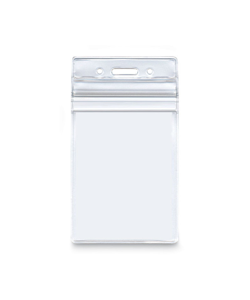 Ensure your credentials remain safe and secure with these Resealable ID Badge Holders. Lightweight, compact design features durable vinyl construction and a seal-top closure to fully protect your security badge on all sides. When sealed, the holder protects your badge from just about everything: water, oil, grease, soil, dust and more. Simply insert your badge and seal the holder as you would seal a resealable sandwich bag. Fully transparent face keeps your ID visible. Die-cut slot and two pre-punched circular holes accommodate lanyards, chains, clips, and badge reels, making it easy to keep your ID with you, no matter where you go. Lanyards, chains, clips and badge reels all sold separately unless otherwise noted.