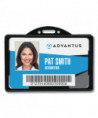 Perfect way to keep your company ID card visible, clean and in good shape. Card (sold separately) slides into grooves and stays secure. Die-cut hole in back and cut lip gives you quick and easy access. Design also includes a thumb cutout on back for easy removal. Card dispensers can attach to lanyards, badge clips and card reels. Accommodates cards up to .30 mil thick.
