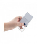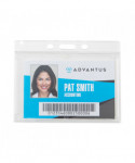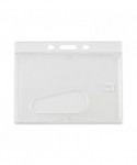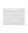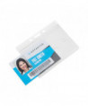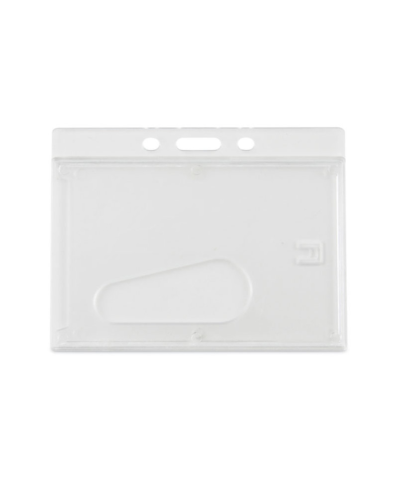 Clear, rigid, molded plastic delivers durability and style. The small compact design keeps keeps your ID card/badge secure. Holds two standard thickness ID or credit cards and features a thumb notch for easy card removal. Frosted holder allows your ID card/badge to be in continual view. Slot and pin holes accommodate lanyards, straps and chains.