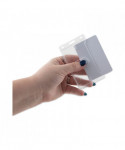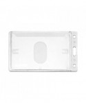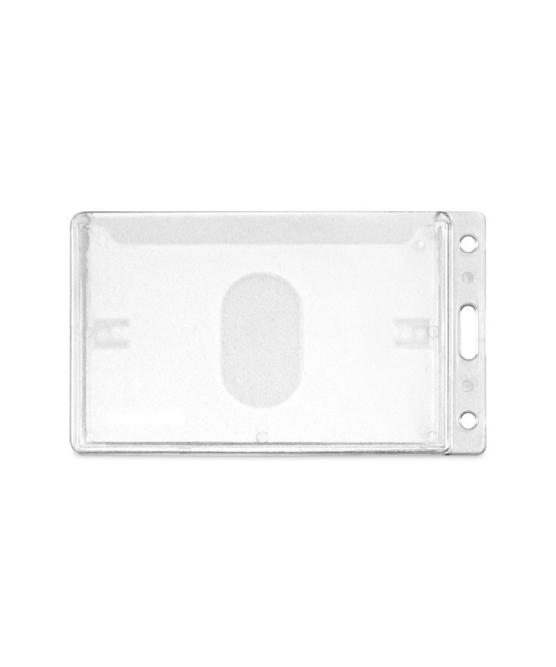 Clear, rigid, molded plastic delivers durability and style. Holds two standard thickness ID or credit cards and features a thumb notch for easy card removal. Slot and pin holes accommodate lanyards, straps and chains.