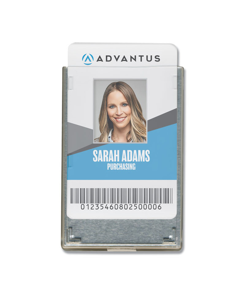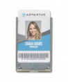 Protect against identity theft with the Advantus Rigid RFID Blocking Two-Badge Smart Card Holder. This innovative vinyl holder is designed to keep your two cards visible while protecting them from intrusive communication. The holder encloses card for longer wear while the thumb access allows easy removal and replacement of cards from blocking material. Two attachment areas on back allow for horizontal or vertical orientation. Ideal for business and government applications. Maximum insert size is 3 3/8 x 2 1/8 inches.