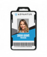 Protect against identity theft with a card holder that blocks radio frequency identification (RFID). Secure personal credit, debit and business ID card information by shielding from unauthorized and unknown access. Secure two-card RFID-blocking badge offers full access for quick and easy removal and placement of cards from blocking material. Maximum insert card size is 3.38" H x 2.13".