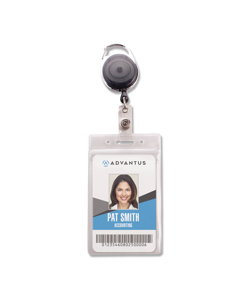Durable vinyl construction and a seal-top closure keeps your security badge fully enclosed on all sides to protect it from water, oil, grease, soil, dust and more. Fully transparent face keeps your ID visible. Die-cut slot and two pre-punched circular holes accommodate lanyards, chains, clips and badge reels (sold separately unless otherwise noted).