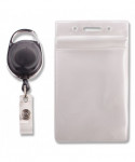 Resealable Badge Holder Combo Pack with Badge Reel, 30" Cord, Vertical, Frost 2.68" x 5" Holder, 2.38" x 3.75" Insert, 10/PK