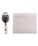 Resealable Badge Holder Combo with Badge Reel, 30" Cord, Horizontal, Frost 4.13" x 3.75" Holder, 3.75" x 2.63" Insert, 10/PK